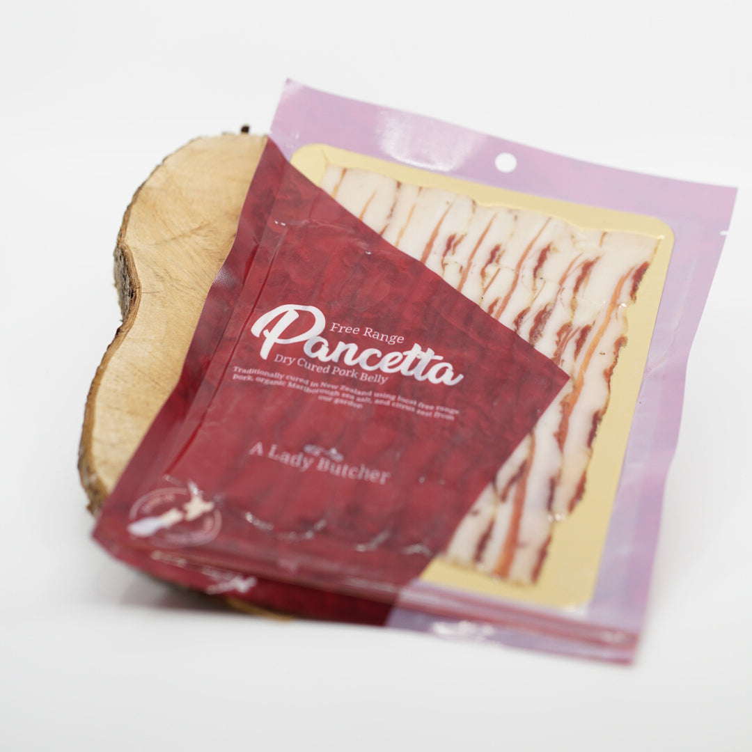 If you like a flavour-filled fatty accompaniment to your grazing platter, A Lady Butcher Free-Range Pancetta is the one. Delicious with our antipasto pickles.